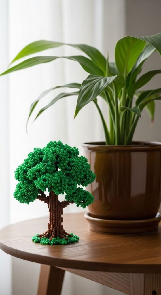 Each tree uses about 50 beads. The two-color design keeps things simple. Green and brown stay easy to follow.