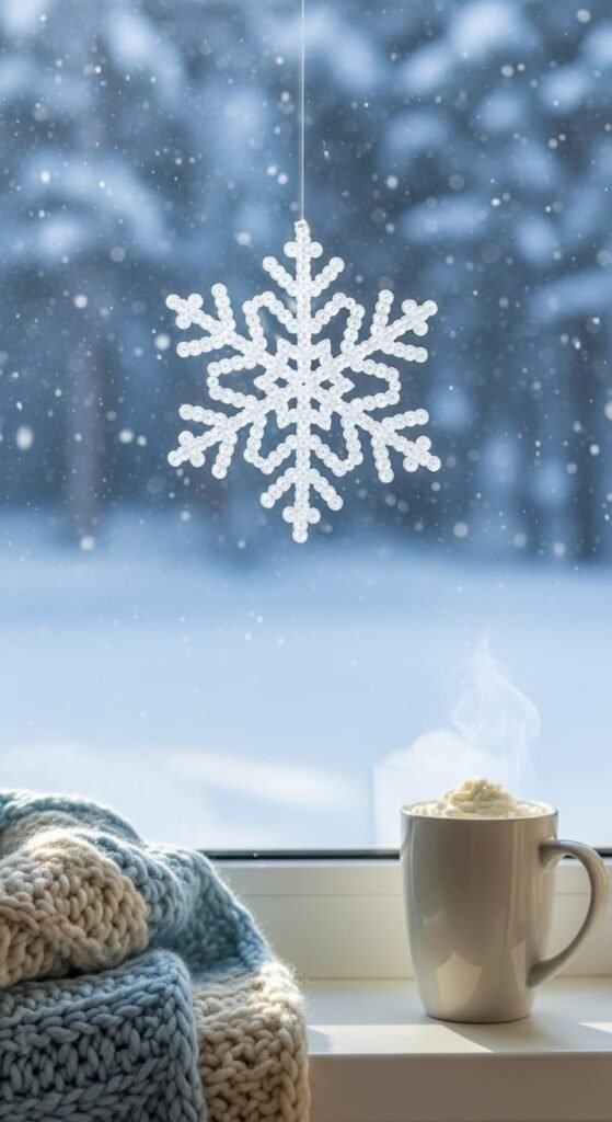 Hang snowflakes in windows or on Christmas trees. Use clear thread for invisible suspension. The icy theme brings winter magic indoors.