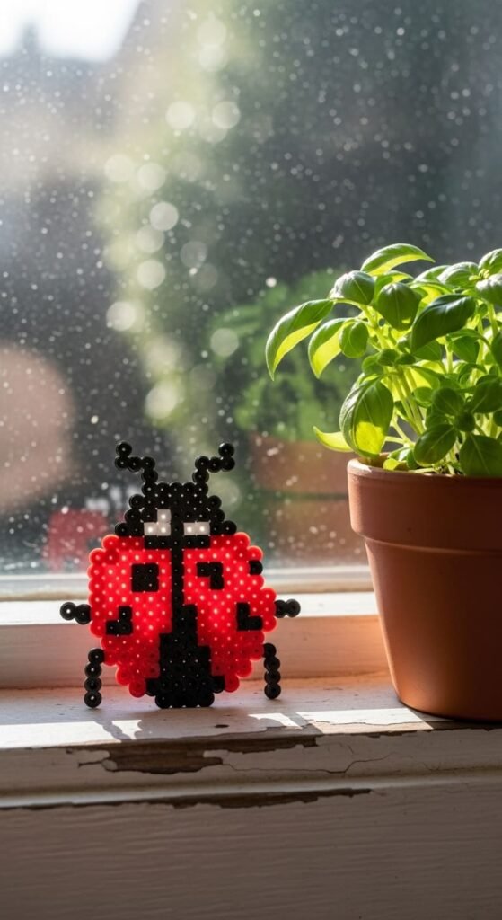 Each ladybug uses about 30 beads. The simple round shape stays beginner-friendly. The spots add character without complexity.