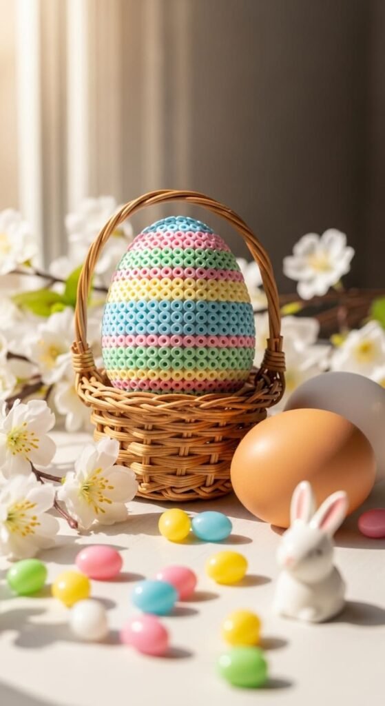 Each egg uses about 45 beads. The oval shape uses simple grid placement. The forgiving silhouette helps beginners succeed.