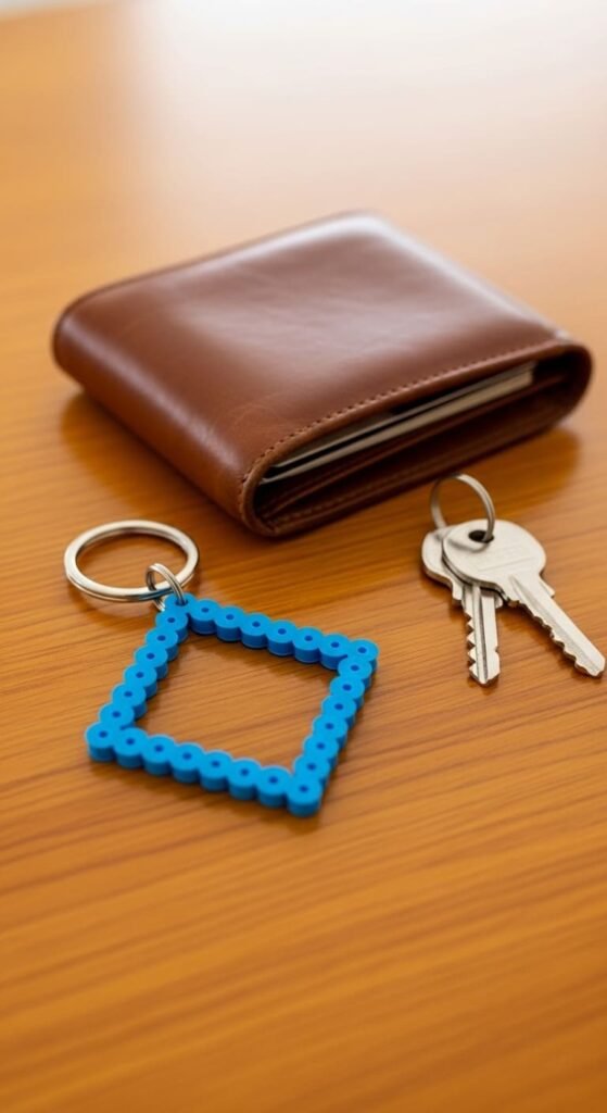 Attach as keychains or pendant necklaces. The clean geometric shape feels modern. Each diamond costs about fifty cents in materials.