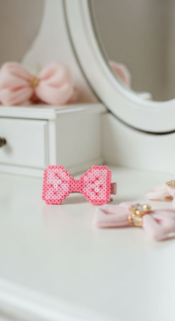 Make bows in different sizes for various uses. Tiny ones work as earring details, medium for hair clips, large for headband accents. The flexible scale fits many uses.