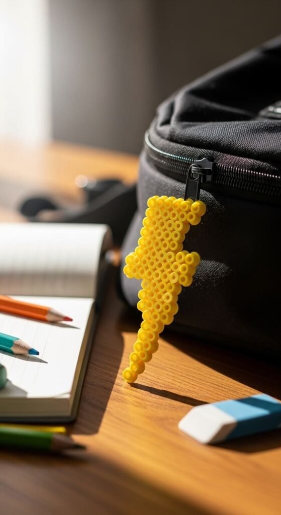 This project teaches you to handle angular shapes with sharp angles. The skill helps with stars, sparkles, or zigzag patterns. Lightning bolts also work as magnets, pins, or pin-on accessories for bold styling.
