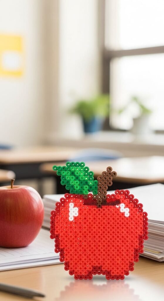 Each apple uses about 50 beads. The recognizable shape stays simple but feels meaningful. Red, green, or yellow apples all work.