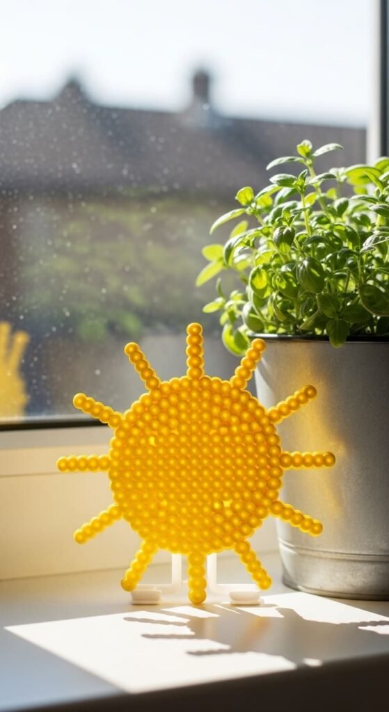 This project teaches you to handle radiating shapes with thin extensions. The skill transfers to flowers, stars, or sunbursts. Suns also work as wall decor, magnets, or hair accessories for cheerful styling.