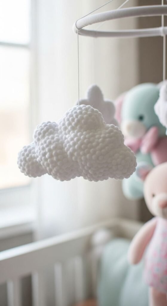 Hang clouds from clear thread for nursery mobiles. Babies enjoy watching them sway gently. The soft theme suits any baby gift.