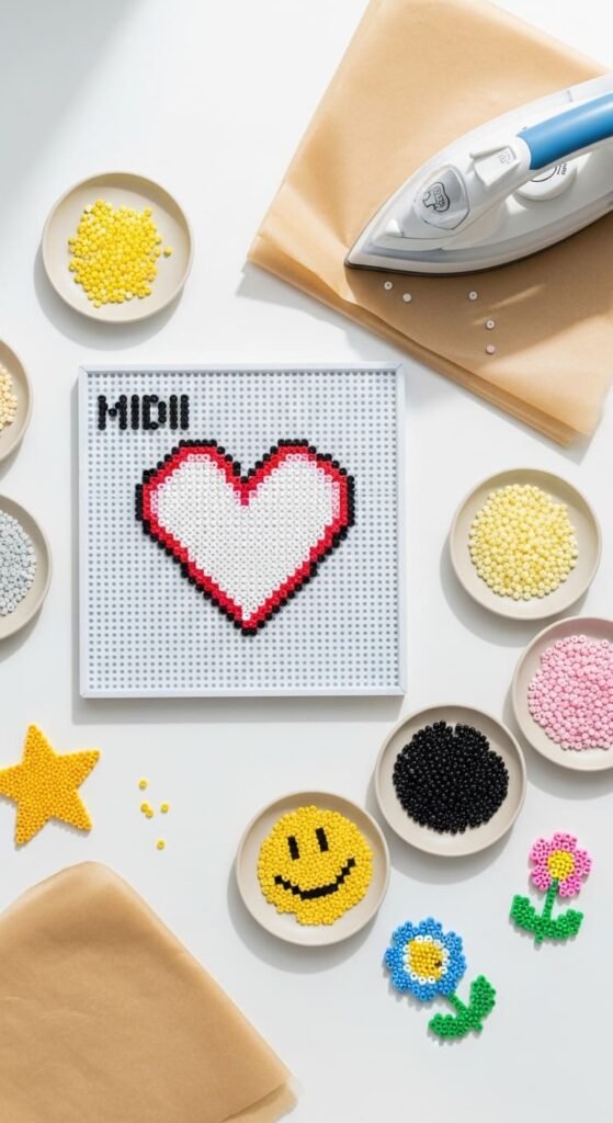 Beginner perler bead patterns build confidence through simple shapes, manageable color counts, and quick finishing times. These 23 easy patterns each use fewer than 100 beads and complete in under 30 minutes. A beginner kit with MIDI beads, a square pegboard, and ironing paper costs under twenty dollars from any craft store. Pick one pattern that excites you and start tonight. Each finished project teaches you grid placement, ironing technique, and finishing skills. Build up from solid hearts to detailed designs as your confidence grows. Make magnets, keychains, ornaments, and gifts that show off your new skills. Beginner perler crafting offers calming creative time and produces handmade items you’ll feel proud to share with friends and family.