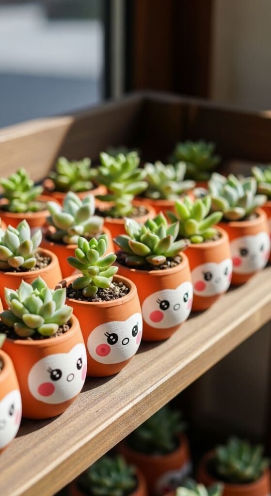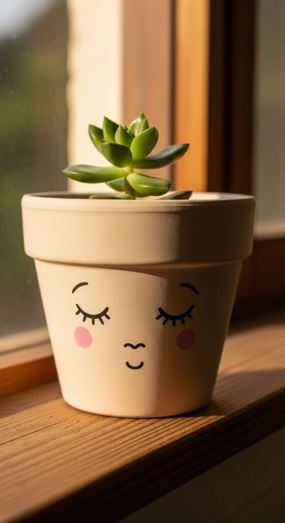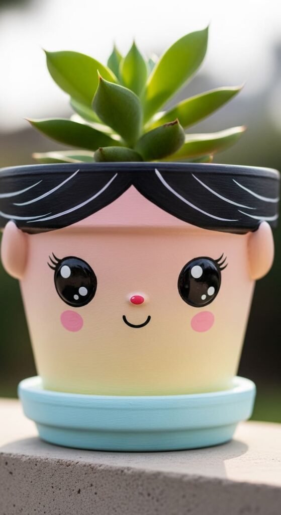 Kawaii faces are the safest cute pot idea because the shapes are simple.