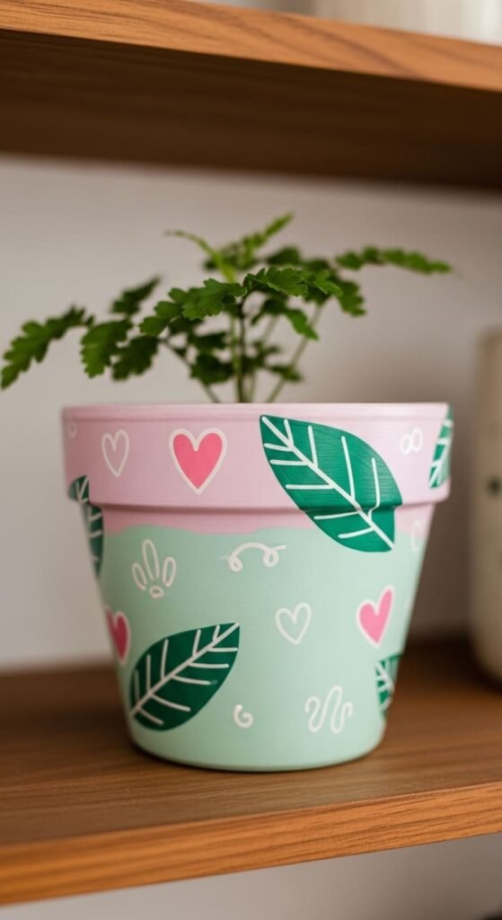 Cute flower pot painting works best when you stop trying to make it perfect. Use simple faces, fruit shapes, dots, bugs, hearts, and food themes. Pick cheap terracotta pots, basic acrylic paint, and paint pens. Start with one small design today. Finish it, seal it, plant something in it, and then make a matching set. That is how plain pots turn into adorable plant displays.