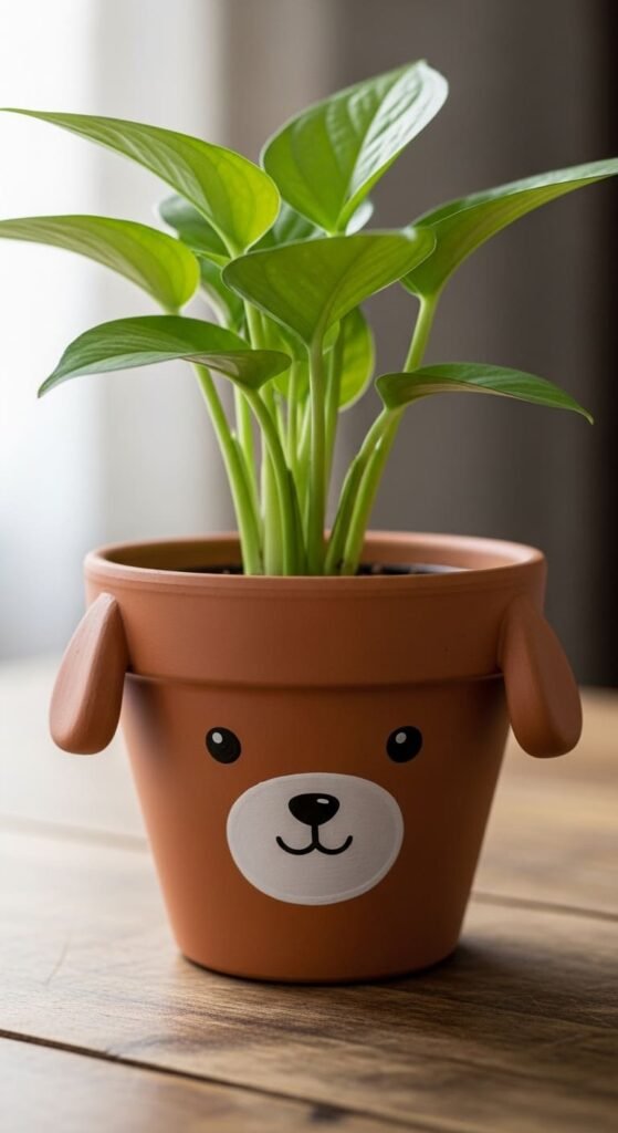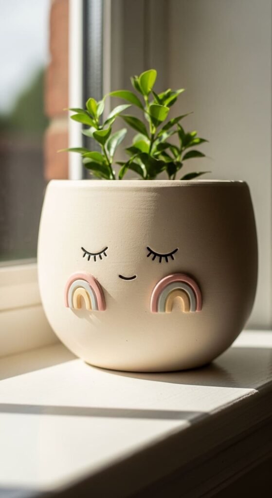 Pair this pot with a small fern or succulent. The plant becomes the “hair,” which makes the whole piece cuter.