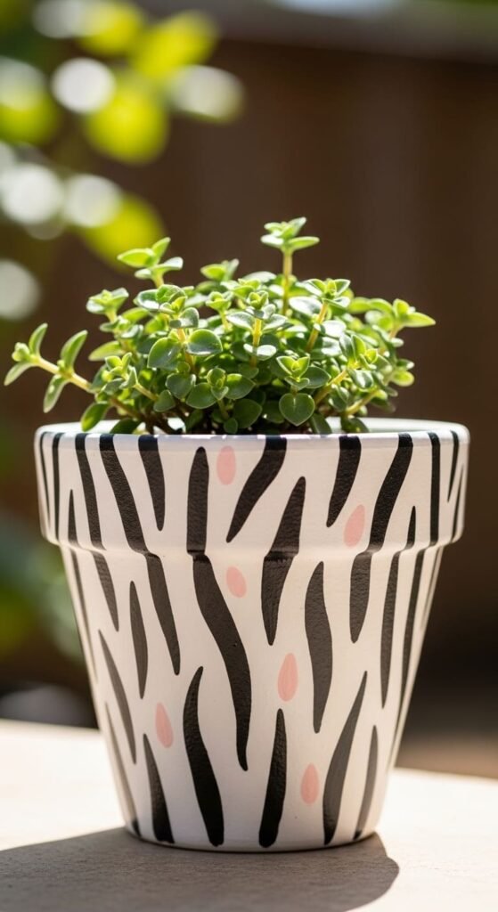Zebra stripe pots give an animal theme without drawing a full animal.
