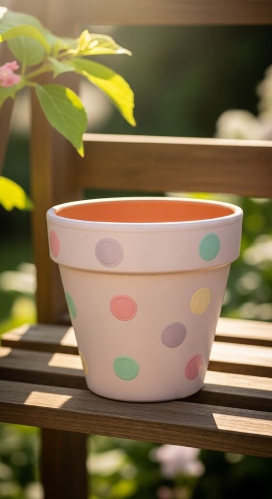 Paint the pot in a pastel base color. Try soft pink, mint, cream, or lavender.