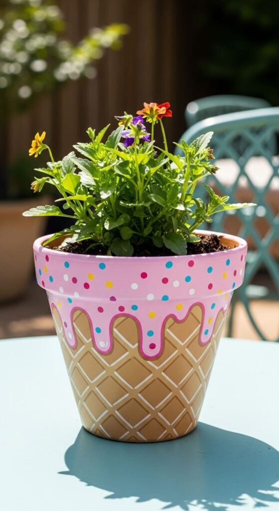Paint the top rim like melting ice cream. Pink, white, mint, or chocolate brown all work.