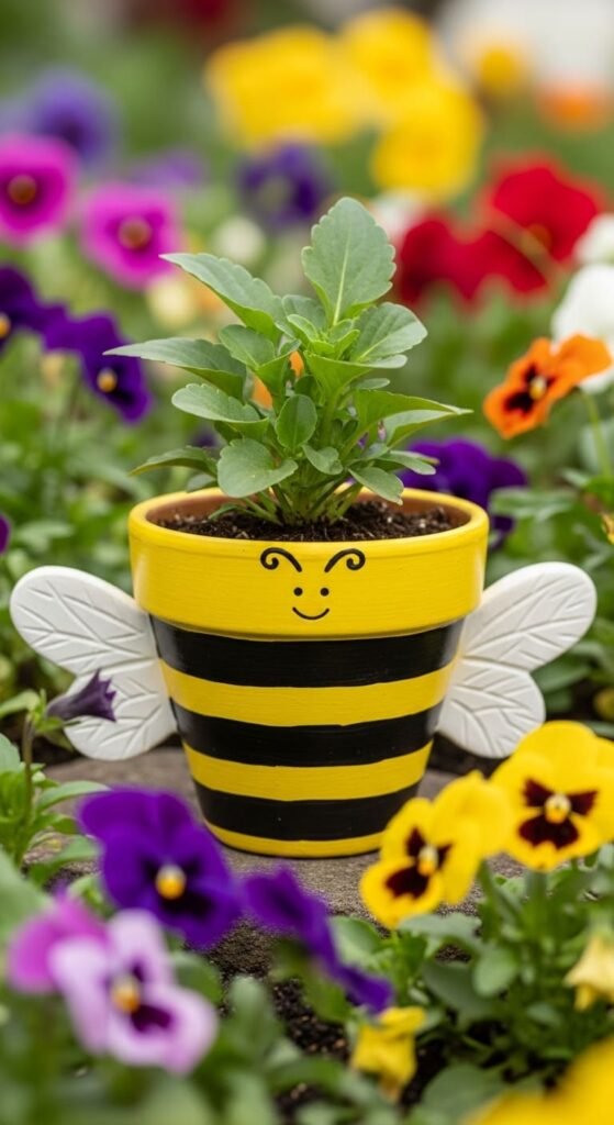 Bumble bee pots are cute, bright, and perfect for garden corners.
