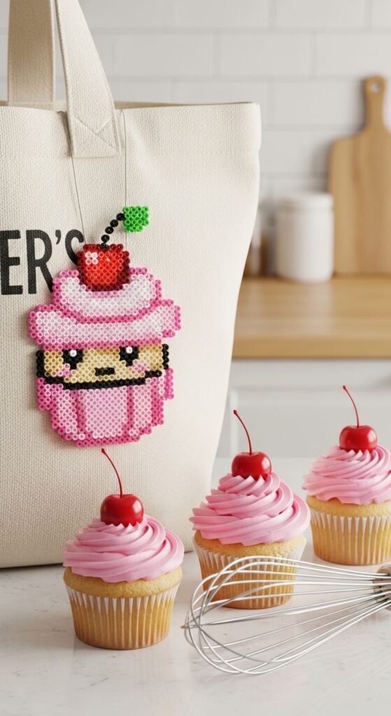 Each cupcake uses about 50 beads. Iron carefully to fuse the liner and frosting together. The cherry adds a 3D feel even though it’s flat.