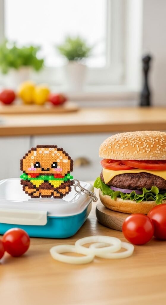 Each burger uses about 70 beads. Iron the layered design carefully so all layers fuse together. The thicker design feels solid and substantial.