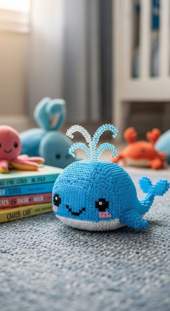 This project teaches you to handle creature designs with multiple fins. The skill helps with fish, dolphins, or sea mammal designs. Tiny whales also work as keychains, magnets, or pendant necklaces for ocean lovers.