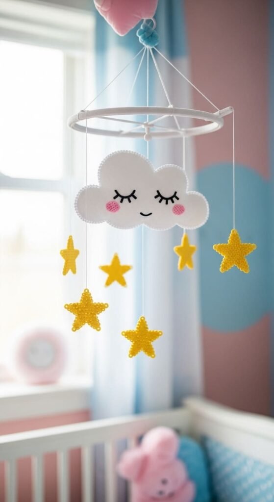 Include tiny yellow or pink beads for star accents around the cloud. A small “Z” can show the cloud is dreaming. The peaceful expression melts hearts.
