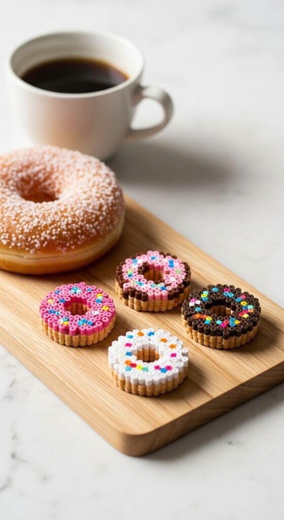 Each donut uses about 35 beads. Iron carefully around the center hole. The opening should stay clean and circular after fusing.