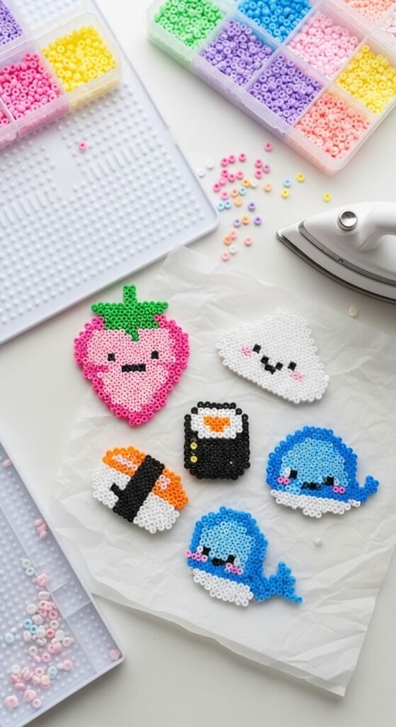 Cute perler bead designs turn simple fuse beads into tiny pieces of joy. Think mini sushi keychains, smiling fruit charms, pastel animal magnets, and Taylor Swift-style friendship bracelets. The kawaii aesthetic dominates this craft because it’s playful, giftable, and finishes in under 20 minutes. These 24 adorable perler bead ideas use cheerful color palettes, simple grid patterns, and beginner-friendly techniques. Whether you want gifts for best friends, charms for backpacks, or decorations for your desk, these designs hit the sweet spot between easy and irresistibly cute. Grab your pegboard, pick a pastel palette, and get ready to make something heart-meltingly precious.