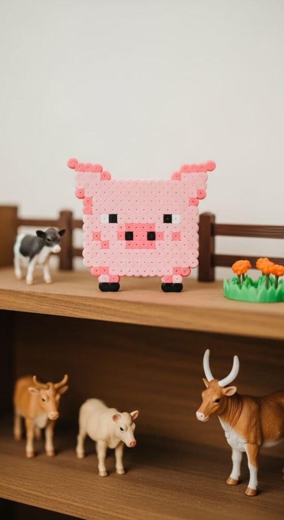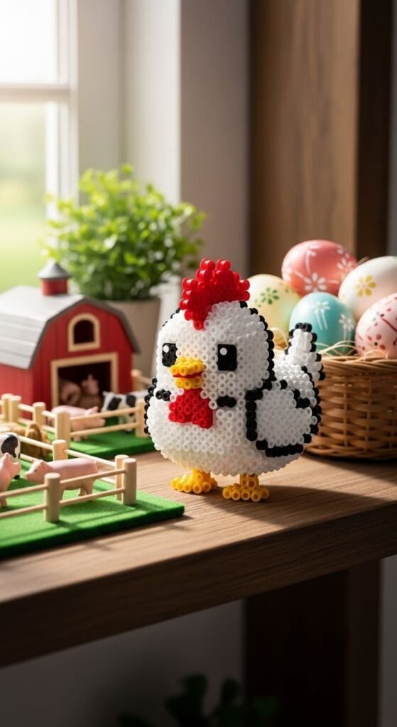 Each chicken uses about 50 beads. The white body with red comb creates instant recognition. The chicken stays one of Minecraft’s smallest mobs.