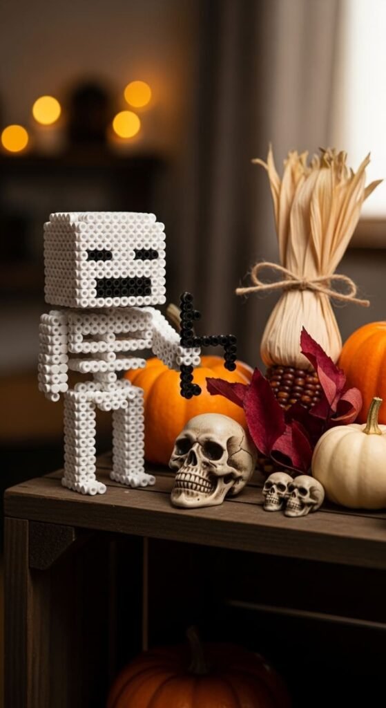 Each skeleton uses about 90 beads. The white bone color matches the in-game design. Add tiny black pixels for eye sockets.