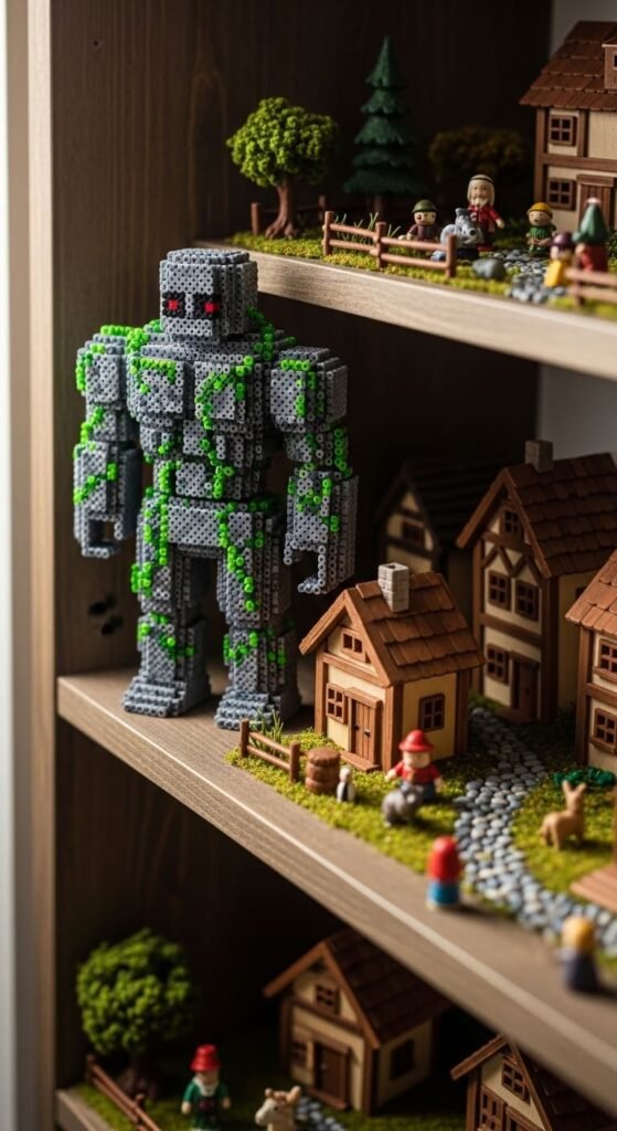 Make matching village figure collections. Villagers, iron golems, and zombies create complete village scenes. Each figure adds story.