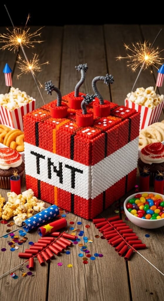 This project teaches you to add letter details within solid blocks. The skill helps with sign designs and labeled patterns. TNT blocks also work as decorative tiles, magnets, or pin-on accessories.