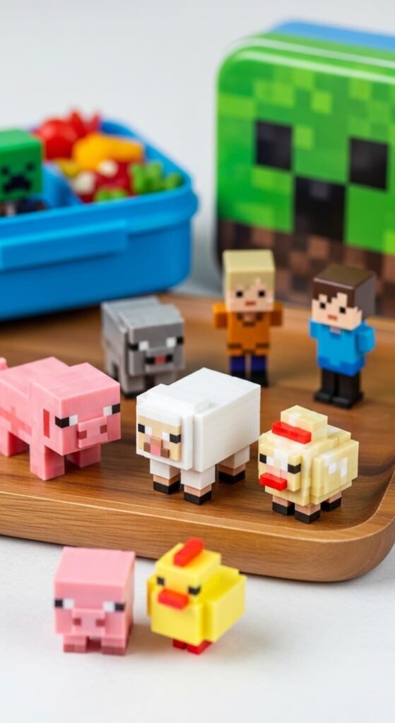 Make matching food collections with cakes, bread, cookies, and apples. Display together as a Minecraft pantry. The themed grouping feels comprehensive.
