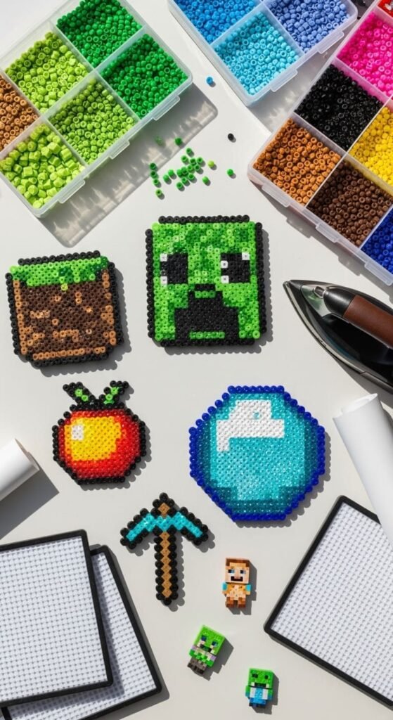 Minecraft perler bead crafts give pixel art lovers the chance to recreate their favorite blocks, mobs, and items in handmade form. These 24 genius ideas range from beginner-friendly creeper magnets and sword keychains to advanced 3D character cubes and custom player skins. The game’s blocky aesthetic translates perfectly to perler grids, making accurate recreation accessible to crafters of every skill level. A starter kit with beads, pegboards, and parchment paper costs under twenty dollars and produces dozens of finished projects. Pick your favorite Minecraft element and start crafting tonight. Build a complete survival kit collection, decorate your gaming room with mob figures, or sell custom designs to fellow players. Whether you go for nostalgic simple creepers or complex 3D character builds, your handmade Minecraft art carries the warmth of personal craft time turned into pixel-perfect fan creation.