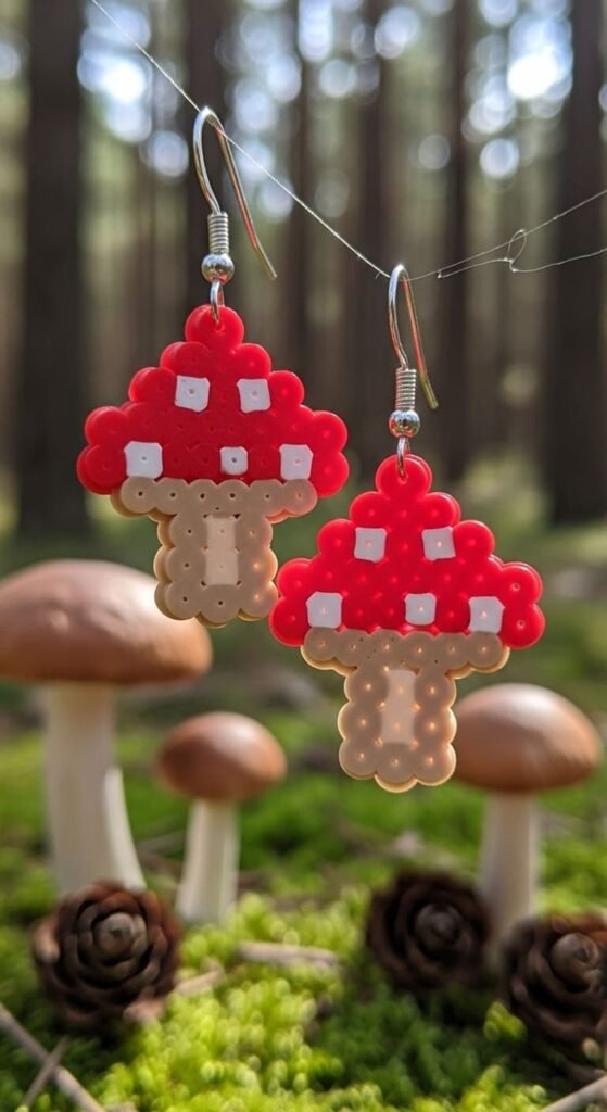 Mini mushroom earrings tap into the popular cottagecore aesthetic. Use red for the cap, white for the spots, and beige or cream for the stem.