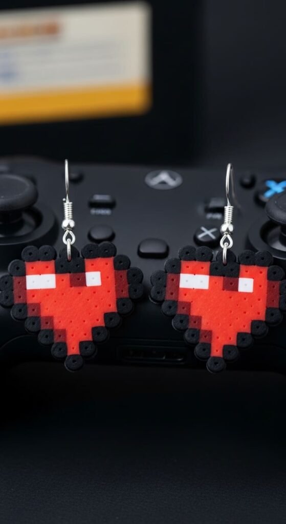 Make matching pixel heart keychains and necklaces for a full retro gaming jewelry set. Each piece adds gamer charm to your style.