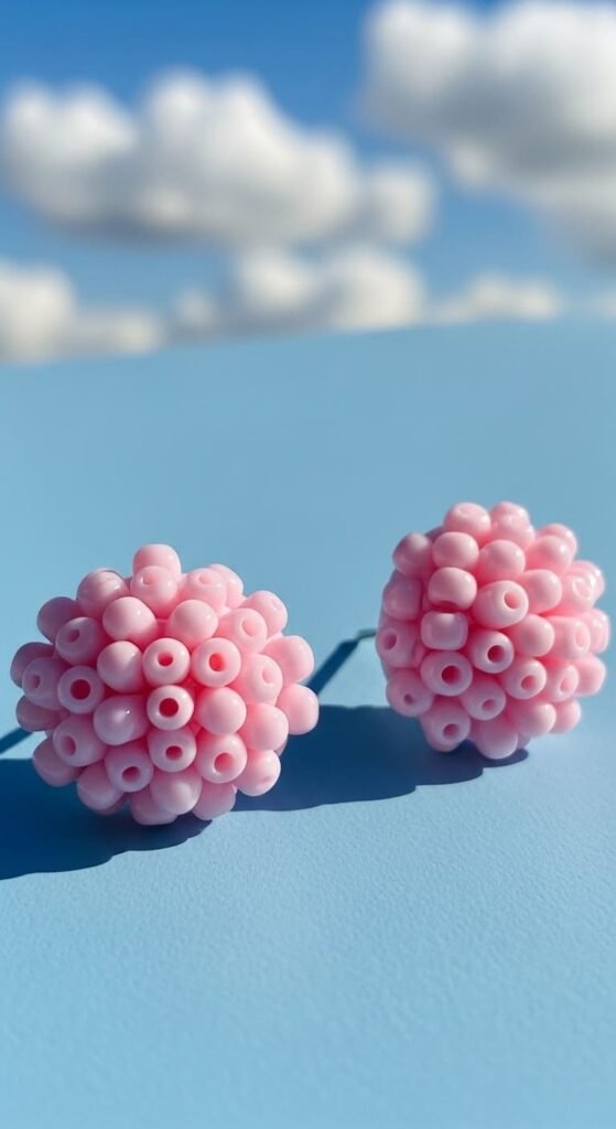 Pastel cloud studs are dreamy and soft earrings. Use pastel pink, baby blue, or white beads for the fluffy cloud shape.
