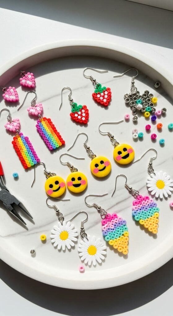 Perler bead earrings turn tiny plastic pieces into colorful, handmade jewelry that adds personality to any outfit. Whether you love dangle styles, simple studs, or geeky character designs, fuse beads give crafters an affordable way to make custom earrings for any occasion. This list pulls together 20 ideas, from beginner heart studs to holographic dangles and fruit-themed sets. Each project includes bead counts, color palettes, and tips for adding jump rings, ear wires, and stud pads. Grab your pegboards, pliers, and irons, because these earring crafts are simple, budget-friendly, and packed with playful style.