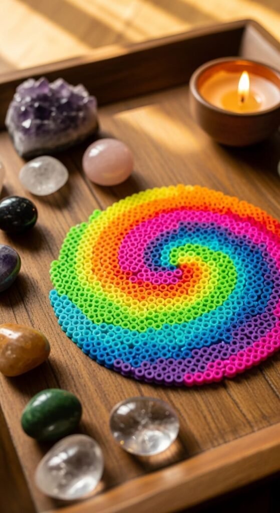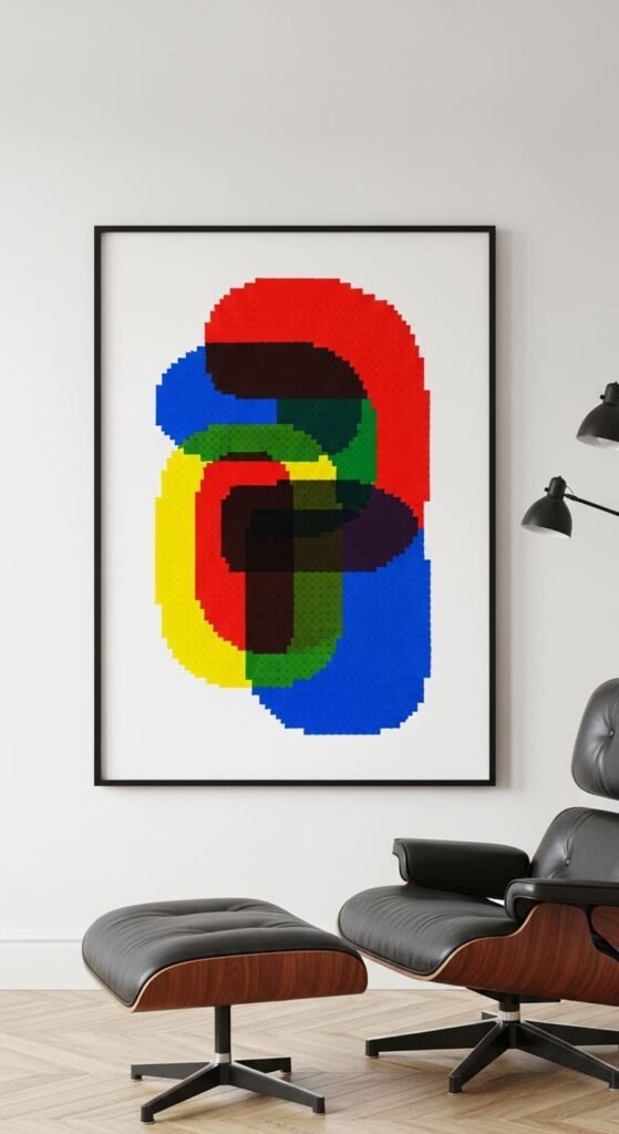 This project teaches you to focus on composition and color theory. The skill helps with all artistic perler work. Modern abstracts also work as coasters, decorative tiles, or wall hangings for contemporary styling.