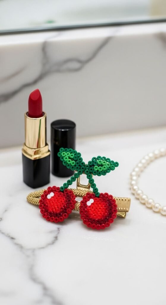 Make matching cherry sets for coordinated outfits. Hair clip plus earring pairs feel curated. The pin-up aesthetic appeals to vintage style fans.