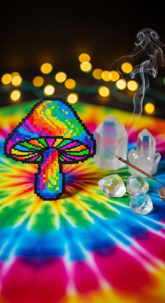Make as wall art for festival-style decor. Mount on cork boards or shadow boxes. The trippy aesthetic suits music festival lovers.