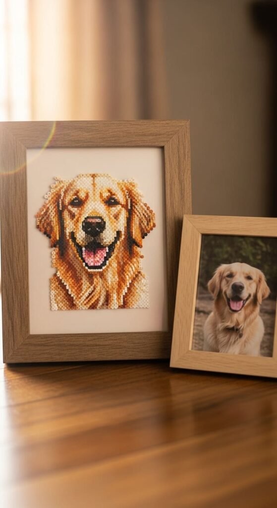 Pet portraits in perler beads make heartfelt keepsakes. Convert a pet photo into a pixel art pattern using free online tools. The grid system translates photos beautifully.