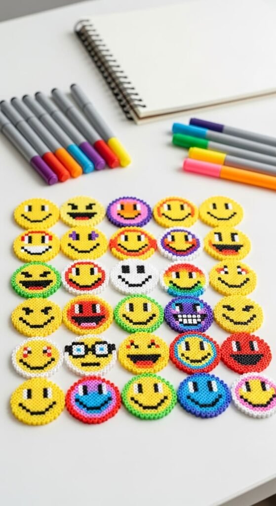 This project teaches you to vary expressions on consistent shapes. The skill helps with character design and emoji-style art. Smileys also work as magnets, pins, or sticker-backed decorations.