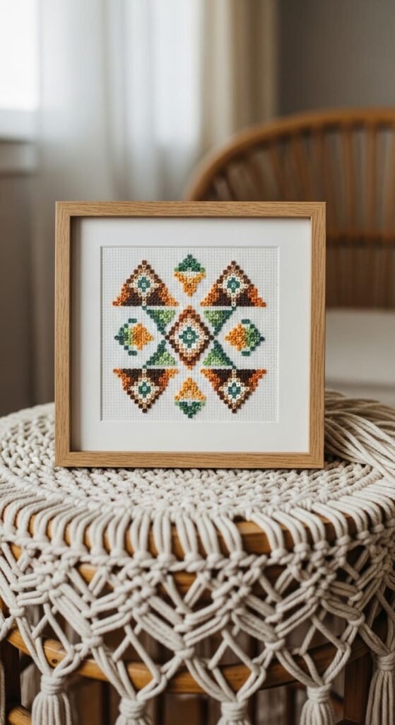 Make sets for gallery walls. Different geometric patterns in matching color schemes look intentional. The collection grows over many crafting sessions.